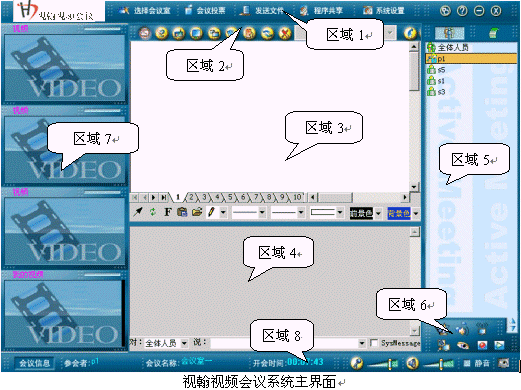 視翰視頻會(huì)議系統(tǒng)主界面主要包括以下幾個(gè)區(qū)域: