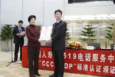 在頒證儀式上,信息產業(yè)部信息中心副主任、中國信息化推進聯(lián)盟秘書長劉獻軍,中國信息化推進聯(lián)盟客戶關系管理專業(yè)委員會常務副主任、《全國呼叫中心標準體系》制定與評審小組組長郭晨東分別向中國人壽總部及三地分公司頒發(fā)了CCCS認證證書。