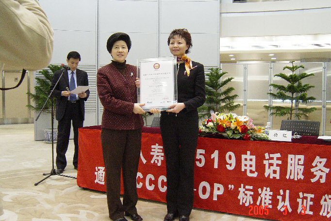 中國人壽95519電話服務中心曾于2004年4月,獲得了由中國信息化推進聯(lián)盟客戶關系管理專業(yè)委員會、CTI論壇客戶關系管理學院和2004中國國際呼叫中心與客戶關系管理大會(ICC