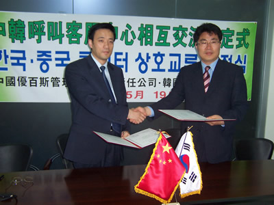5月19日,在中韓客服中心相互交流協(xié)定儀式上,北京優(yōu)百斯管理咨詢有限責(zé)任公司與韓國光州女子大學(xué)簽訂了戰(zhàn)略合作協(xié)議,同時也標志著雙方會更加緊密的合作,為促進中韓客戶服務(wù)中心的交流和發(fā)展起到積極的推動作用。