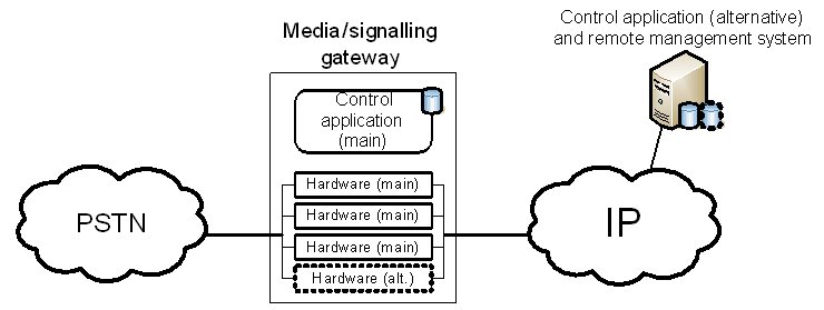 這兩種保護(hù)機(jī)制的區(qū)別可以從下面的例子進(jìn)一步闡述。該事例是一種企業(yè)IP-PSTN網(wǎng)關(guān)應(yīng)用。一般情況下,企業(yè)級(jí)的網(wǎng)關(guān)并不采用軟交換架構(gòu),所以媒體和信令網(wǎng)關(guān)功能在同一設(shè)備內(nèi)實(shí)現(xiàn)。這類網(wǎng)關(guān)是一個(gè)獨(dú)立的機(jī)架,內(nèi)裝能實(shí)現(xiàn)媒體和信令處理的硬件板卡和控制類應(yīng)用程序。此設(shè)備可以本地管理,也可以采用遠(yuǎn)程管理,如采用標(biāo)準(zhǔn)Web服務(wù)器。