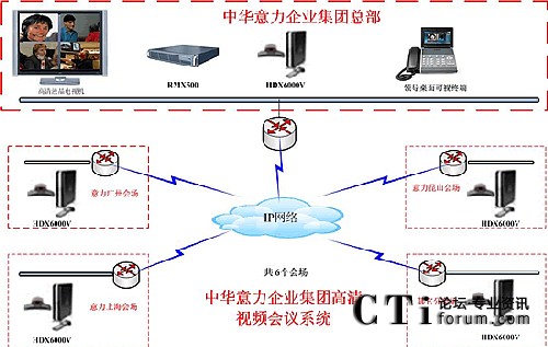 具體配置如下: 在中華意力企業(yè)集團配置RMX508C,所有會場配置HDX6000V及一臺領(lǐng)導(dǎo)桌面終端VVX1500