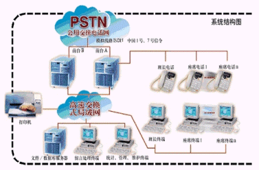 該系統(tǒng)采用微機(jī)板卡方案,在實(shí)現(xiàn)常規(guī)功能的同時與當(dāng)?shù)氐慕鸷贽k公網(wǎng)建立物理聯(lián)接,充分利用已有網(wǎng)絡(luò)資源并尊重客戶原有業(yè)務(wù)習(xí)慣及流程。