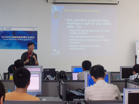 Nuance·科大訊飛聯(lián)合實驗室自成立以來始終重視與合作伙伴的協(xié)作關(guān)系,此次組織的"隨意說"與"準(zhǔn)確路由"技術(shù)培訓(xùn),針對目前倍受關(guān)注的應(yīng)用方向,比如娛音門戶、語音搜索引擎等,提供了強有力的技術(shù)支撐,使得合作伙伴可以根據(jù)需要開發(fā)出所希望的自然語音應(yīng)用。參加培訓(xùn)的工程師表示培訓(xùn)內(nèi)容非常適應(yīng)語音應(yīng)用發(fā)展需要,為應(yīng)用開發(fā)奠定了良好的基礎(chǔ),并希望Nuance與科大訊飛能夠持續(xù)地將此類專業(yè)技術(shù)培訓(xùn)開展下去,給大家的工作提供支持與幫助,共同推動語音技術(shù)的應(yīng)用不斷深化,并帶來更多價值。