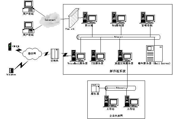 對于不同類型消息呼入、呼出的外圍系統(tǒng)設計遵循模塊化原則;系統(tǒng)內部消息流滿足格式統(tǒng)一、可操作性統(tǒng)一、開發(fā)接口統(tǒng)一等特點。在軟、硬件選型上,充分考慮系統(tǒng)的穩(wěn)定性、開放性、經濟性,根據不同的系統(tǒng)規(guī)模進行詳細論證。