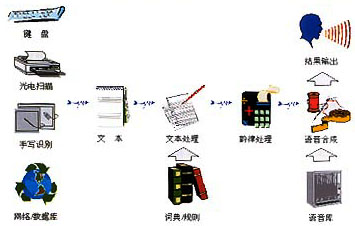 -----按照人類言語功能的不同層次,語言合成也可分成三個(gè)層次,它們是:(1)從文字到語音的合成(Text-To-Speech);(2)從概念到語音的合成(Concept-To-Speech);(3)從意向到語音的合成(Intention-To-Speech)。這三個(gè)層次反映了人類大腦中形成說話內(nèi)容的不同過程,涉及人類大腦的高級(jí)神經(jīng)活動(dòng)。不難想象,即使是按規(guī)則的文字到語音合成(文語合成)也已經(jīng)是相當(dāng)困難的任務(wù)。為了合成出高質(zhì)量的語言,除了依賴于各種規(guī)則,包括語義學(xué)規(guī)則、詞匯規(guī)則、語音學(xué)規(guī)則外,還必須對(duì)文字的內(nèi)容有很好的理解,這將涉及自然語言理解的問題。從這一點(diǎn)講,文語轉(zhuǎn)換系統(tǒng)實(shí)際上也可看作一個(gè)人工智能系統(tǒng)。圖1顯示了一個(gè)完整的文語轉(zhuǎn)換系統(tǒng)示意圖。文語轉(zhuǎn)換過程是先將文字序列轉(zhuǎn)換成音韻序列,再由語音合成器生成語音波形。其中第一步涉及語言學(xué)處理,例如分詞、字音轉(zhuǎn)換等,以及一整套有效的韻律控制規(guī)則;第二步需要先進(jìn)的語音合成技術(shù),能按要求實(shí)時(shí)合成出高質(zhì)量的語音流。因此一般說來,文語合成系統(tǒng)都需要一套復(fù)雜的文字序列到音素序列的轉(zhuǎn)換程序,也就是說,文語轉(zhuǎn)換系統(tǒng)不僅要應(yīng)用數(shù)字信號(hào)處理技術(shù),而且必須有大量的語言學(xué)知識(shí)的支持。當(dāng)然其中語音合成終究還是最基本的部分,它相當(dāng)于“人工嘴巴”,任何語言合成系統(tǒng)包括文語轉(zhuǎn)換系統(tǒng),都離不開語音合成器。