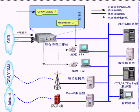 該95598客服系統(tǒng)采用世界知名品牌的Intel Dialogic板卡,構(gòu)建在強(qiáng)大的、開放的CTI應(yīng)用開發(fā)平臺(tái)AnyTouch上,開發(fā)出符合縣級(jí)供電公司的客戶服務(wù)業(yè)務(wù),并完全根據(jù)《國(guó)電95598客戶服務(wù)中心系統(tǒng)規(guī)范》,通過(guò)靈活、方便的圖形化開發(fā)工具或接口,與供電公司已有的用電MIS系統(tǒng)緊密結(jié)合,是一套強(qiáng)大的、完整的95598客戶服務(wù)系統(tǒng)。