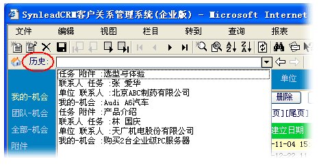 有必要回顧SynleadCRM先前解決數(shù)據(jù)森林穿行問(wèn)題的重要方法——“歷史”記憶功能,它今后將與新增的“線(xiàn)程”向?qū)Ч餐瑤椭脩?hù)游刃有余地操作CRM。