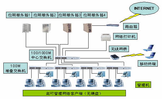 2、 部署一套操作系統(tǒng)系統(tǒng)和應(yīng)用軟件就可以最多為60臺終端使用。