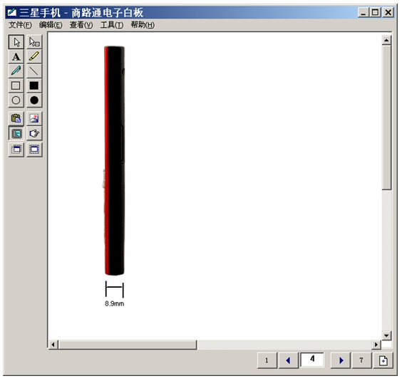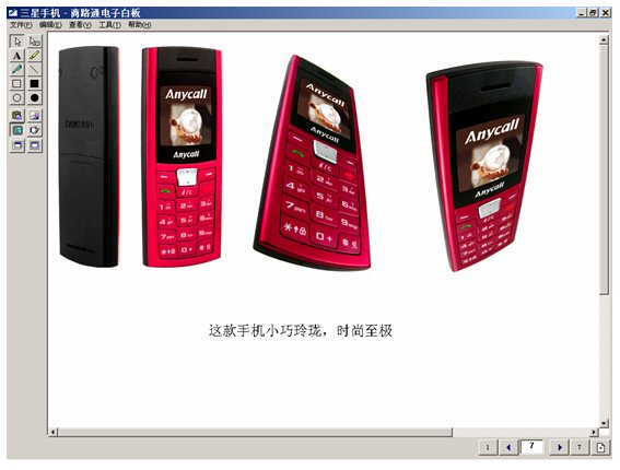 坐席進(jìn)入富媒體知識(shí)庫(kù),調(diào)出三星手機(jī),啟動(dòng)電子白板,將這個(gè)畫(huà)面推送給客戶。