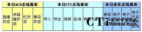 這個(gè)故事的報(bào)表中,將呼叫中心中的CTI、IVR、ACD、坐席軟電話、錄音、坐席業(yè)務(wù)軟件等等信息記錄在一起,形成了非常綜合的基礎(chǔ)表,并且可以在此基礎(chǔ)上進(jìn)行深度挖掘。