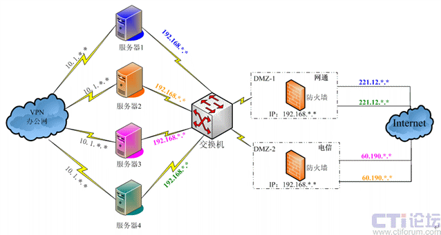 系統(tǒng)平臺(tái)采用集群化部署,實(shí)現(xiàn)跨網(wǎng)絡(luò)分布式,從而在應(yīng)用中實(shí)現(xiàn)南北網(wǎng)通電信的互聯(lián)互通,以及專(zhuān)網(wǎng)用戶的無(wú)障礙接入,實(shí)現(xiàn)方式如下圖所示:
