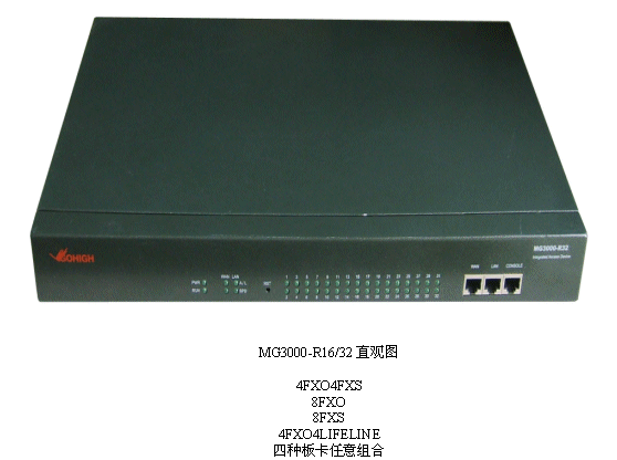 在介紹MG3000-R系列產(chǎn)品的典型應(yīng)用時(shí),產(chǎn)品中心研發(fā)經(jīng)理介紹到:“MG3000-R適用于企業(yè)原有直線電話系統(tǒng)的VOIP改造、原有PBX電話系統(tǒng)的VOIP改造。與軟交換配合后可做中繼使用,也是企業(yè)異地分支機(jī)構(gòu)的最佳選擇。再有,在IP呼叫中心中,它還可以構(gòu)建呼叫中心的遠(yuǎn)端坐席。此外還有話務(wù)臺(tái)等應(yīng)用!