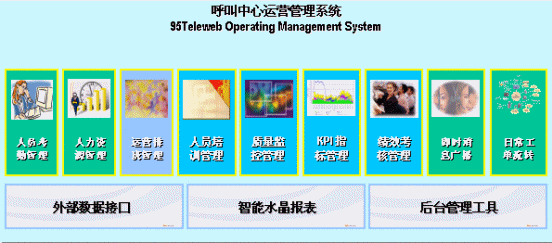 Teleweb-OMS運(yùn)營管理系統(tǒng)共有11個模塊,涵蓋了動態(tài)質(zhì)檢管理、培訓(xùn)管理、考勤管理、人力資源管理、話務(wù)預(yù)測與自動排班、KPI管理、績效考核、部門間的需求單管理等各個環(huán)節(jié),并且提供了外部數(shù)據(jù)抽取功能和報(bào)表自動生成功能。