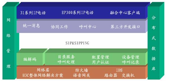 H3C企業(yè)融合通訊辦公解決方案可以提供:呼叫中心、統(tǒng)一消息、語音通信、電話會(huì)議、協(xié)同工作, 語音留言、網(wǎng)站鏈接等更廣泛、更高效、更經(jīng)濟(jì)的應(yīng)用模式,最大程度上保護(hù)了企業(yè)的投資。