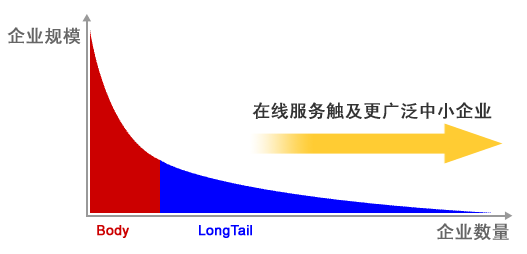 以上廠商的網(wǎng)絡(luò)廣告服務(wù)、電子商務(wù)服務(wù)都面向于中小企業(yè)市場,而最近興起的SaaS(在線企業(yè)軟件服務(wù))也是希望通過互聯(lián)網(wǎng)服務(wù)的方式占領(lǐng)企業(yè)軟件市場的“長尾”。