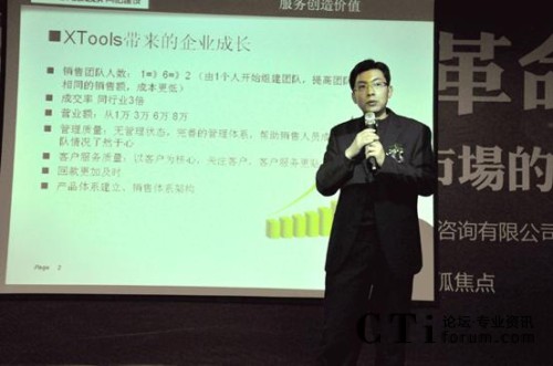 另外,濟(jì)南創(chuàng)弈工場總經(jīng)理趙小峰任曉峰與現(xiàn)場嘉賓分享了自身創(chuàng)業(yè)與成長過程。創(chuàng)弈工場科技有限公司成立于2008年,是由山東大學(xué)創(chuàng)業(yè)團(tuán)隊(duì)發(fā)展而來的、以先進(jìn)電子商務(wù)架構(gòu)和企業(yè)CI設(shè)計(jì)專家為目標(biāo)的公司。趙總?cè)慰偸且晃?0后互聯(lián)網(wǎng)新銳,他表示:“公司運(yùn)用XTools具有管理思想的系統(tǒng)幫助管理這支年輕的隊(duì)伍,使其健康發(fā)展,對(duì)于創(chuàng)業(yè)者來說,銷售體系的管理是至關(guān)重要的,這樣我們少走了彎路!