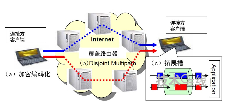 由于是利用多路徑路由發(fā)送分割的數(shù)據(jù),1條路徑被竊聽只會有部分分割數(shù)據(jù)被竊聽。不過,如果發(fā)送分割數(shù)據(jù)的全部路徑都被竊聽,分割數(shù)據(jù)也可能全部流出。為此,此次的秘密通信系統(tǒng)設(shè)想采用基于覆蓋路由器的網(wǎng)絡(luò)(覆蓋網(wǎng)絡(luò)),將全部數(shù)據(jù)被竊聽的可能性減小到了接近0。這是因為覆蓋路由器的通信路徑能夠進(jìn)行實時切換。此次的保密通話系統(tǒng)將在覆蓋網(wǎng)絡(luò)達(dá)到實用化水平時投產(chǎn)實用。計劃在3~4年內(nèi)實現(xiàn)。