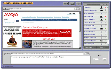 作為電話會(huì)議的補(bǔ)充,會(huì)議主席可以建立基于web的應(yīng)用。通過(guò)這樣的web接口,會(huì)議主席和與會(huì)人員不僅看到與會(huì)人員的狀態(tài),還可以設(shè)置聽(tīng)眾只聽(tīng),聽(tīng)和說(shuō),可以看到web界面的權(quán)限。web