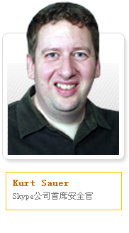 Kurt Sauer:我是2003年前來到Skype公司的。之前我曾在Sun Microsystems公司,主要從事對等驗證工作的研究。在Skype,我的工作是對Skype客戶端已存在的加密方法進行審核。從此,我就擔(dān)當(dāng)了Skype家族產(chǎn)品安全體系總監(jiān)察的角色。之后,我還負(fù)責(zé)對安全漏洞事件進行處理。自從被eBay收購后,薩班斯法案(Sarbanes-Oxley)的遵從性考查等安全事務(wù)也成了我的職責(zé)之一。