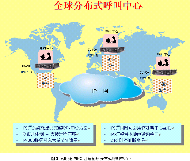 IPX平臺(tái)上,然后轉(zhuǎn)接到客服人員電話上。這樣,公司的客服人員在本地就可以實(shí)現(xiàn)對(duì)異地客戶的貼身服務(wù),而客戶本身并不會(huì)察覺到,卻享受到了相當(dāng)于本地的服務(wù),因此能夠很好地滿足客戶的需求。