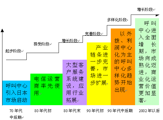 日本市場(chǎng)是全球較為成熟的呼叫中心市場(chǎng)之一,呼叫中心的應(yīng)用遍布各行各業(yè)。在整體呼叫中心行業(yè)產(chǎn)生的市場(chǎng)價(jià)值中,由呼叫中心外撥直接產(chǎn)生的占1/4強(qiáng),50%的呼叫中心配備了專(zhuān)用外撥設(shè)備。這說(shuō)明呼叫中心已完全脫離了服務(wù)窗口的概念,成為了企業(yè)營(yíng)銷(xiāo)的有力工具,呼叫中心已高度利潤(rùn)中心化。
