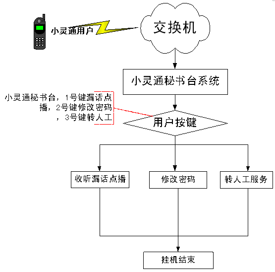小靈通秘書臺(tái)業(yè)務(wù)系統(tǒng)結(jié)構(gòu)見(jiàn)下圖: