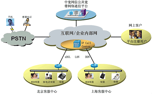 - IP Call Center接入中寬網(wǎng)信寬帶電話(huà)服務(wù)可使企業(yè)IP呼叫中心成為面向全球PSTN及網(wǎng)上用戶(hù)的呼叫中心系統(tǒng)。