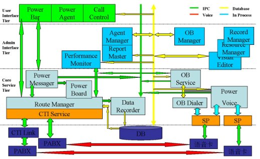 PowerCALL系統(tǒng),包括:呼叫引擎、路由管理、外撥管理、監(jiān)控、報表、文字消息等模塊