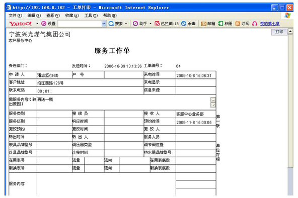 業(yè)務(wù)查詢:用戶可通過受理人員或自動語音應(yīng)答系統(tǒng)根據(jù)用戶要求從數(shù)據(jù)庫查詢資料,然后通過語音方式播報或送到用戶指定傳真機(jī)或其他終端設(shè)備上。應(yīng)考慮以后用web方式查詢氣費等數(shù)據(jù),以不動及主體設(shè)備方式平滑升級。