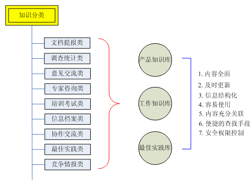 二、實際工作中,以知識庫形式管理和運作的信息數(shù)據(jù)主要包括:產(chǎn)品知識庫、工作知識庫、最佳實踐庫。