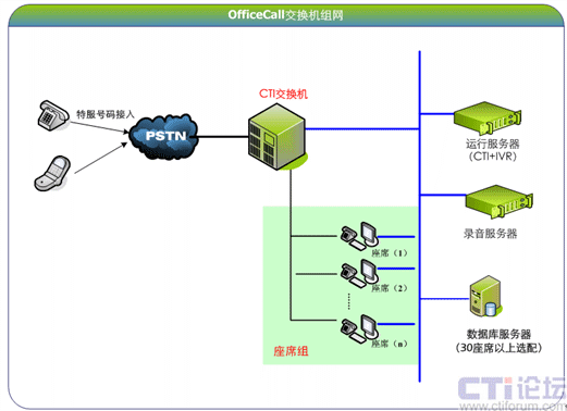 OfficeCall目前主要支持AVAYA IPO,阿爾卡特OXO等中小型的交換機(jī),與這些中小型交換機(jī)組網(wǎng),共同建設(shè)100座席以下呼叫中心系統(tǒng)整體解決方案,通過簡化安裝配置和系統(tǒng)維護(hù),縮短系統(tǒng)上線時間,降低后期系統(tǒng)維護(hù)難度,減少系統(tǒng)的投資預(yù)算,為中型規(guī)模的呼叫中心系統(tǒng)提供更適合的解決方案。