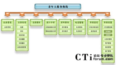 老年人服務熱線系統(tǒng)是為老年人提供援助服務的電話呼叫平臺,利用統(tǒng)一的特服號碼接入,實現統(tǒng)一服務流程和服務標準,服務內容包括咨詢服務、求助報警服務、預定服務(預定生活服務、新聞送達、導引服務)、老年人定位導向服務、語音讀報服務等等。老年人服務熱線系統(tǒng)將通過呼叫中心、手機短信息等多種接入手段相結合的方式向廣大老年人提供7×24小時服務。即:工作時間實現人工座席及自動語音受理;非工作時間實現自動語音受理及值班座席受理。