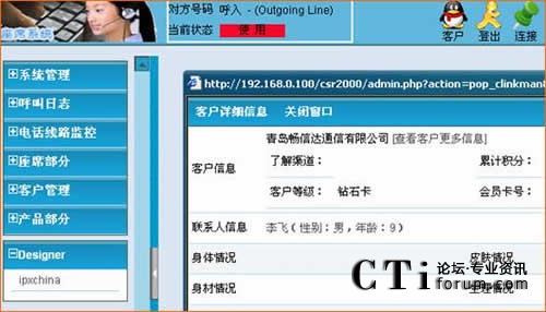 當(dāng)電話(huà)接入客服代表電話(huà)振鈴的同時(shí),電腦屏幕會(huì)彈出客戶(hù)的相關(guān)資料,座席對(duì)客戶(hù)的資料一目了然,提高了工作效率。如果是新客戶(hù),則彈出空白頁(yè)面,客服代表可以說(shuō)歡迎的同時(shí)錄入客戶(hù)資料。
