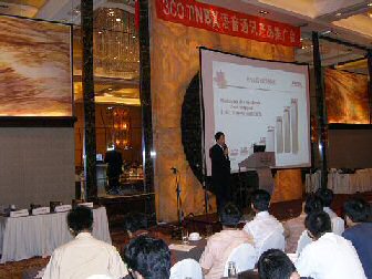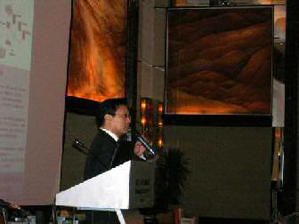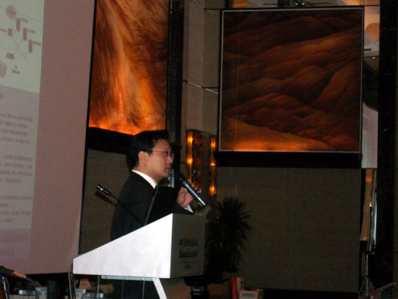 。。2005年8月24日,3Com NBX語音通訊產(chǎn)品推廣會(huì)于北京香格里拉大酒店成功舉辦。圖為3Com中國地區(qū)高級(jí)市場(chǎng)經(jīng)理朱海翔闡述3Com產(chǎn)品與市場(chǎng)(點(diǎn)擊察看大圖)