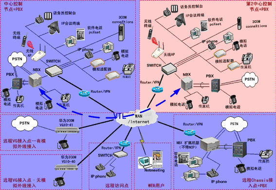 散辦公的企業(yè): 分散辦公的企業(yè),部門間的通話費用已成為企業(yè)的龐大負(fù)擔(dān)。 3Com NBX 網(wǎng)絡(luò)電話系統(tǒng)利用網(wǎng)絡(luò)技術(shù),可以使分散辦公的企業(yè)能夠通過數(shù)據(jù)路由實現(xiàn)彼此間的語音通信,節(jié)省全部的企業(yè)內(nèi)部通話費用,實現(xiàn)統(tǒng)一電話出口管理、權(quán)限設(shè)置與實時通話記錄,并可通過其數(shù)據(jù)骨干網(wǎng)(WAN)對電話呼叫進(jìn)行公司內(nèi)部的動態(tài)路由分配。