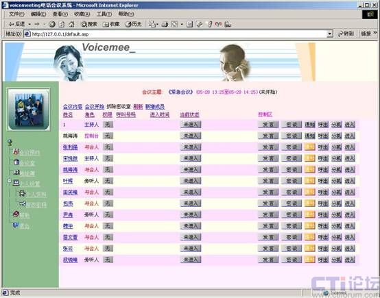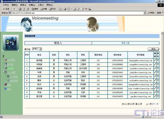 - Internet管理/控制方式:每個(gè)人在任何地方可以通過Internet管理維護(hù)自己的通訊錄,控制自己發(fā)起的會(huì)議。