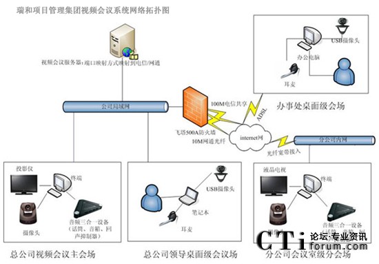 瑞和項(xiàng)目管理集團(tuán)網(wǎng)絡(luò)基礎(chǔ)建設(shè)以后,各個(gè)分支機(jī)構(gòu)通過ADSL接入到互聯(lián)網(wǎng),一般每個(gè)分支單位大約5人左右,負(fù)責(zé)1個(gè)省的業(yè)務(wù)。在現(xiàn)有的網(wǎng)絡(luò)基礎(chǔ)上構(gòu)建了XView迅流視頻系統(tǒng),來滿足各地之間的溝通需求,系統(tǒng)的大范圍使用大大的提高辦公效率,節(jié)省時(shí)間及會(huì)議成本。隨著各部門遠(yuǎn)程通信需求日益增多,充分發(fā)揮現(xiàn)有網(wǎng)絡(luò)優(yōu)勢,根據(jù)瑞和項(xiàng)目管理集團(tuán)實(shí)際規(guī)模,對(duì)XView迅流視頻會(huì)議系統(tǒng)進(jìn)行擴(kuò)容到全國50個(gè)重點(diǎn)分支,改造以后XView迅流視頻會(huì)議系統(tǒng)作為公司主要通訊手段。實(shí)現(xiàn)各個(gè)分公司、辦事處充分應(yīng)用網(wǎng)絡(luò)視頻會(huì)議系統(tǒng)進(jìn)行音頻、視頻和數(shù)據(jù)的多方溝通,提高辦公效率。
