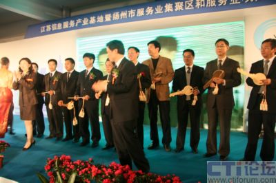 4月21日,江蘇信息服務(wù)產(chǎn)業(yè)基地暨揚(yáng)州市服務(wù)業(yè)集聚區(qū)和服務(wù)業(yè)項(xiàng)目推介洽談會(huì)在江蘇信息服務(wù)產(chǎn)業(yè)基地(揚(yáng)州)隆重召開,省信息產(chǎn)業(yè)廳副廳長(zhǎng)龔懷進(jìn)、揚(yáng)州市委常委、常務(wù)副市長(zhǎng)張京霞為省信息安全技術(shù)中心揭牌,中國(guó)網(wǎng)通集團(tuán)公司總工程師滕勇,神州數(shù)碼高級(jí)副總裁陳勇,上海萬(wàn)得信息股份董事長(zhǎng)陸風(fēng)等數(shù)十位集團(tuán)公司老總現(xiàn)場(chǎng)祝賀,同時(shí)IBM、AVAYA、優(yōu)勝資訊、神州數(shù)碼等60多家企業(yè)現(xiàn)場(chǎng)簽定了投資合作協(xié)議,而華潤(rùn)通信、中國(guó)電信、酒店無(wú)憂、漢世紀(jì)等10家企業(yè)則從廣陵區(qū)委書記孔令俊手中接過(guò)了入駐金鑰匙,成為首批入駐江蘇信息服務(wù)產(chǎn)業(yè)基地的企業(yè),至此江蘇信息服務(wù)產(chǎn)業(yè)基地迎來(lái)首發(fā)項(xiàng)目招商的“開門紅”,江蘇信息服務(wù)產(chǎn)業(yè)基地也因此被業(yè)界冠以中國(guó)首家專業(yè)定位信息呼叫和數(shù)據(jù)處理產(chǎn)業(yè)的“中國(guó)聲谷”的美譽(yù)。 “江蘇信息服務(wù)產(chǎn)業(yè)基地(揚(yáng)州)”位于廣陵新城內(nèi),為省信息產(chǎn)業(yè)廳與揚(yáng)州市政府聯(lián)手打造的中國(guó)首家專業(yè)定位于呼叫信息和數(shù)據(jù)處理產(chǎn)業(yè)的省級(jí)信息服務(wù)業(yè)基地,占地2.52平方公里,總投資50億元,處于揚(yáng)州ECBD核心區(qū)域,交通便捷,區(qū)位優(yōu)勢(shì)獨(dú)特,生態(tài)環(huán)境優(yōu)美;匕凑铡爱a(chǎn)業(yè)社區(qū)”的標(biāo)準(zhǔn)和“商務(wù)公園”的理念規(guī)劃建設(shè),重點(diǎn)發(fā)展信息服務(wù)產(chǎn)業(yè)及具有揚(yáng)州特色的城市信息化應(yīng)用軟件和嵌入式軟件產(chǎn)業(yè),立足長(zhǎng)三角、面向全國(guó)、服務(wù)世界,逐步發(fā)展成為全國(guó)乃至世界呼叫中心產(chǎn)業(yè)最佳實(shí)踐基地、全國(guó)生產(chǎn)性服務(wù)業(yè)的標(biāo)桿示范基地及呼叫中心人才培訓(xùn)與派遣基地。