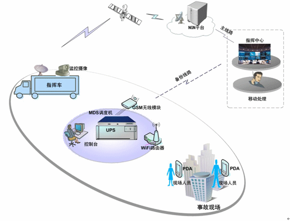 針對整個城市,甚至整個區(qū)域的這種面積大、移動性強(qiáng)、通信環(huán)境不穩(wěn)定的室外作業(yè),并且通常以專用的應(yīng)急調(diào)度指揮車作為移動指揮平臺的城市應(yīng)急指揮系統(tǒng)情況, Zed-3推出了基于IP網(wǎng)絡(luò)的MDS調(diào)度系統(tǒng),以多接口、多路由的方式來實現(xiàn)對所有區(qū)域的調(diào)度覆蓋,主要通過移動通信通道GSM、CDMA及衛(wèi)星的IP鏈路通道,確保了在任何環(huán)境下,都有可選用的通信通道與各電信運(yùn)營商對接,從而實現(xiàn)與政府的應(yīng)急指揮中心、各個職能部門、各作戰(zhàn)單位的通信系統(tǒng)連接;并且可在任意時間聯(lián)系到任意相關(guān)負(fù)責(zé)人,從而達(dá)到最有效的調(diào)度指揮效果,保證突發(fā)事件的及時處理,促進(jìn)城市安全管理,保障應(yīng)急指揮調(diào)度工作的順利進(jìn)行。
