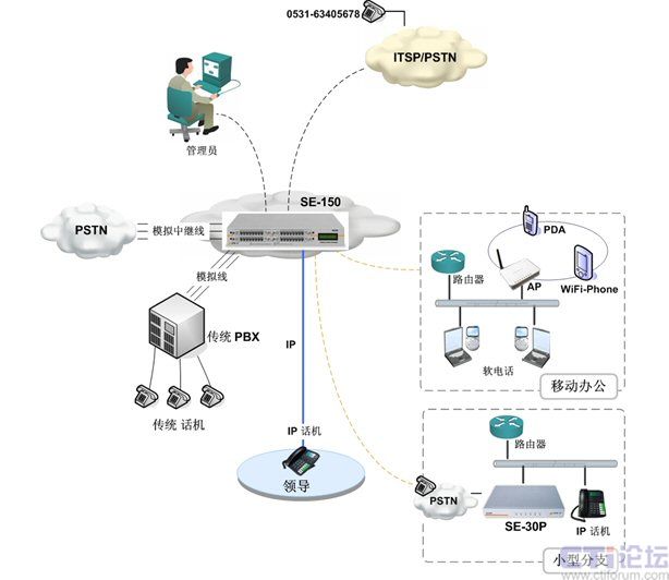 IP PBX即是專(zhuān)為中小企業(yè)量身設(shè)計(jì)的,其中典型產(chǎn)品為SE150。