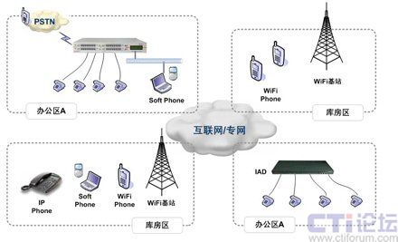 隨著北京西南物流中心業(yè)務(wù)的不斷發(fā)展,其庫區(qū)在不斷落成,倉儲(chǔ)面積仍不斷擴(kuò)大。由于各個(gè)庫區(qū)及辦公樓都具有無線Mesh網(wǎng)絡(luò)覆蓋,西南物流中心在現(xiàn)有無線網(wǎng)絡(luò)基礎(chǔ)上陸續(xù)開展企業(yè)信息化業(yè)務(wù)。由于各個(gè)庫房與辦公樓之間都有一定距離,因?yàn)樵谥行牡耐ㄐ懦杀緲?gòu)成中,內(nèi)部業(yè)務(wù)部門之間的溝通占據(jù)了絕對的比重,經(jīng)常居高不下的通信成本嚴(yán)重制約了北京西南物流中心業(yè)務(wù)的發(fā)展,于是,現(xiàn)實(shí)的溝通需求與高昂的通信成本之間的矛盾開始凸現(xiàn),內(nèi)部語音通信就成為了西南物流中心需要解決的首要任務(wù)之一。