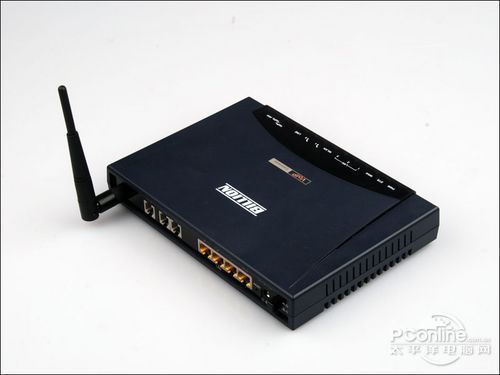 BiPAC 6404VGP外觀看上去與一臺(tái)普通的無線路由器沒多大區(qū)別,由于是面向企業(yè)級(jí)用戶,所以外型設(shè)計(jì)比較沉穩(wěn)。整機(jī)深藍(lán)色,在無線路由器的正上方鮮明的標(biāo)注出它同時(shí)還是一臺(tái)VoIP語音網(wǎng)關(guān)。