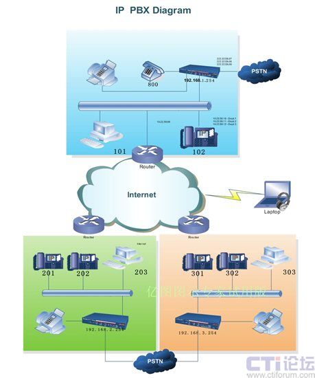 PBX接入網(wǎng)絡(luò)就意味著您的分支機構(gòu)能夠完全拋棄PSTN直接通話。在此我們建議您使用專線接入方式并在分支機構(gòu)間建立VPN已保證更好的通話質(zhì)量和網(wǎng)絡(luò)安全性。