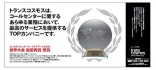 引進(jìn)國際領(lǐng)先的MO3(獲得2006 “Contact Center World Award” 最優(yōu)秀獎(jiǎng))呼出技術(shù):MO3是母公司transcosmos獨(dú)力研發(fā)的呼出服務(wù)體系。通過對(duì)數(shù)據(jù)的充分分析和挖掘,以“顧客行動(dòng)模式”為基礎(chǔ),預(yù)測“哪個(gè)顧客、哪個(gè)坐席、在哪個(gè)時(shí)間點(diǎn)、提供什么樣的服務(wù)、進(jìn)行怎樣的進(jìn)一步接觸”,以及精確計(jì)算是否收到最大投資和成效比(ROI),實(shí)行最有效的和顧客接觸的運(yùn)營。