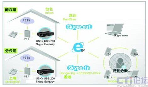 本公司新推出USKY UBS-400(4 ports)/UBS-200(2 ports) Skype Gateway,是專為企業(yè)用戶所設(shè)計(jì)的外接式Skype網(wǎng)關(guān)。只須將原有電話交換機(jī)(PBX)連接上我們的USKY UBS-400/UBS-200,企業(yè)用戶無(wú)需改變撥號(hào)方式,便可輕松透過(guò)桌上電話撥打或接聽(tīng)Skype電話,將傳統(tǒng)電話提升為網(wǎng)絡(luò)電話(VoIP),既簡(jiǎn)單又方便!有效幫助企業(yè)用戶增加通話效率,更能大幅減少通話費(fèi)。