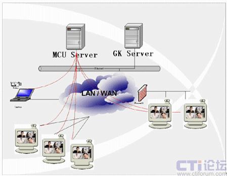 由于系統(tǒng)內置了視頻廣播流的功能,因此在只要此網絡上的計算機被賦予了一定的權限以后,都可以收看會議的過程,計算機上只需裝上相應的接收軟件,如CISCO