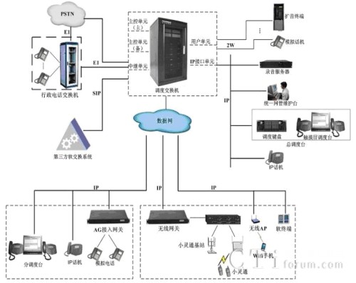 系統(tǒng)提供IP接口資源,可直接接入IP話機、軟電話等IP終端作為網(wǎng)內(nèi)分機用戶。網(wǎng)內(nèi)用戶可作為行政用戶,也可根據(jù)需要授權調(diào)度用戶。