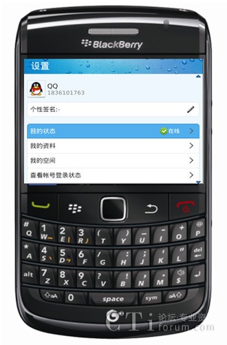 圖:通過BlackBerry® Torch™ 9800登陸黑莓QQ