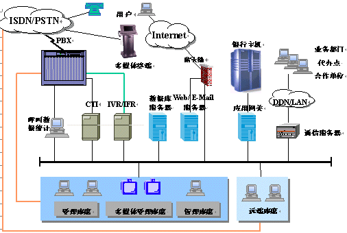 銀行客戶服務(wù)中心采用開放的和可擴展的體系結(jié)構(gòu),通過高度靈活的系統(tǒng)平臺,為不同訪問方式的用戶提供多種形式的服務(wù)。